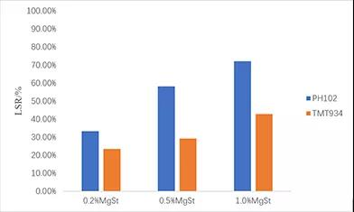 § 結(jié)果分析:隨著潤(rùn)滑劑濃度的增加,PH102的軟化現(xiàn)象加劇,TMT934比PH102具有更低的潤(rùn)滑劑敏感性。