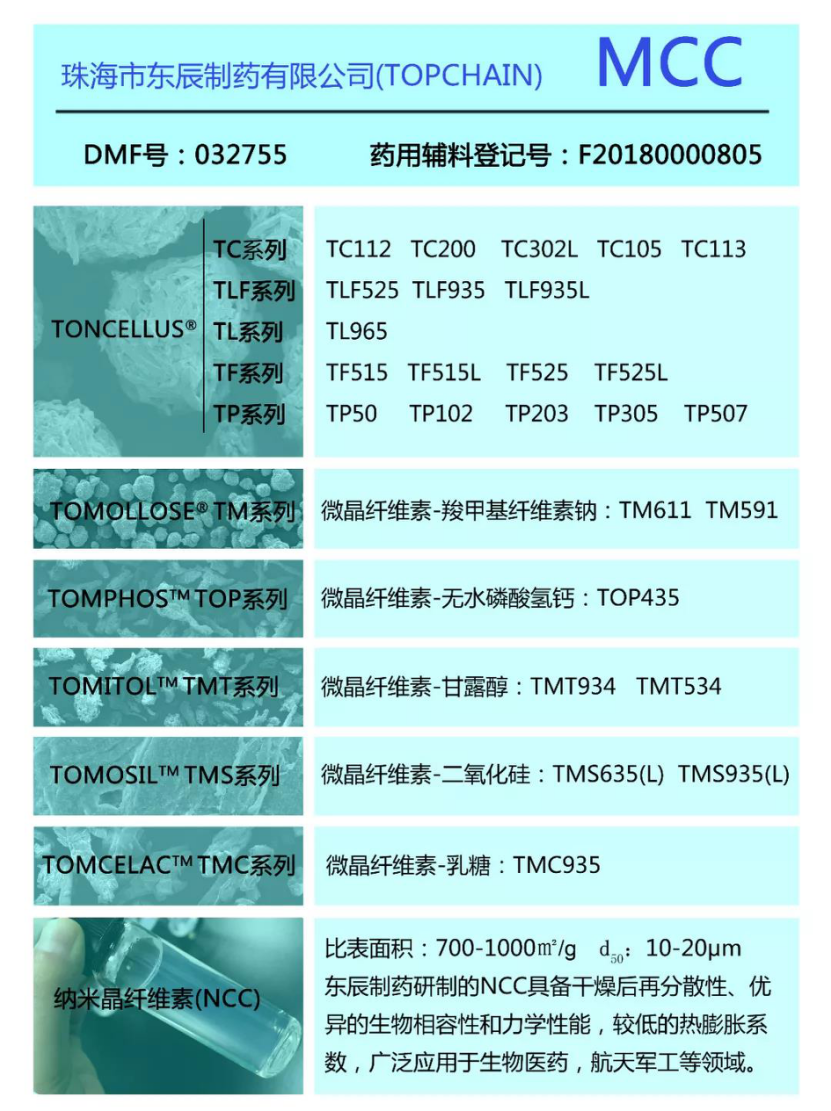 東辰制藥從創(chuàng)建之初,即開始微晶纖維素的研發(fā),目前,已獲得包含微晶纖維素丸芯、交聯(lián)羧甲纖維素鈉、納米晶纖維素制備工藝等4項發(fā)明專利。東辰制藥的微晶纖維素系列產品質量穩(wěn)定,型號眾多,可滿足不同工藝和用途需求,還可以根據(jù)用戶的需求,個性化定制。