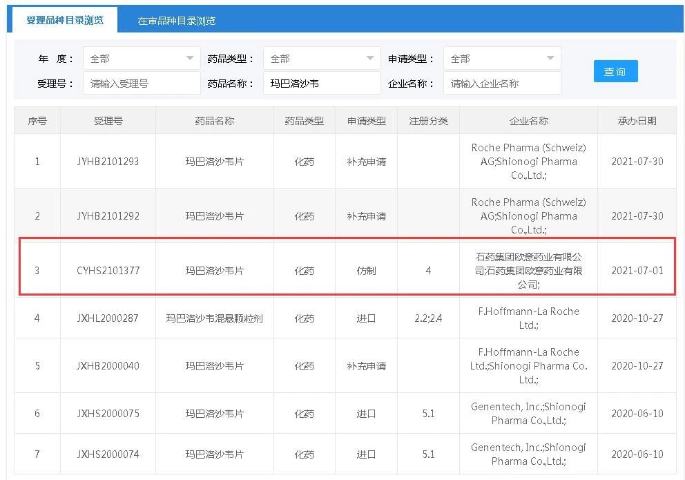 圖3.CDE瑪巴洛沙韋受理情況