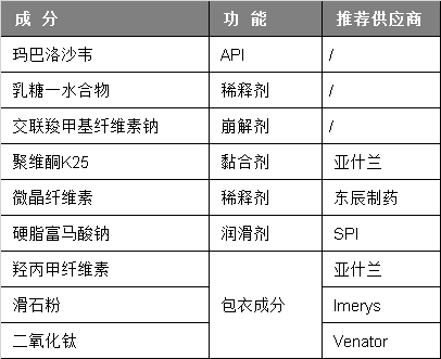 Xofluza?瑪巴洛沙韋片處方組成見(jiàn)表1: